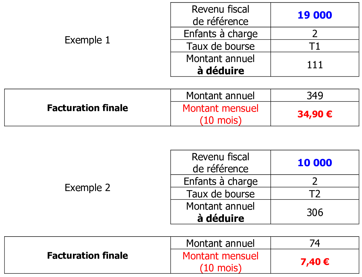 - Coût réel pour 1 collégien si vous avez 2 enfants à charge, exemples :