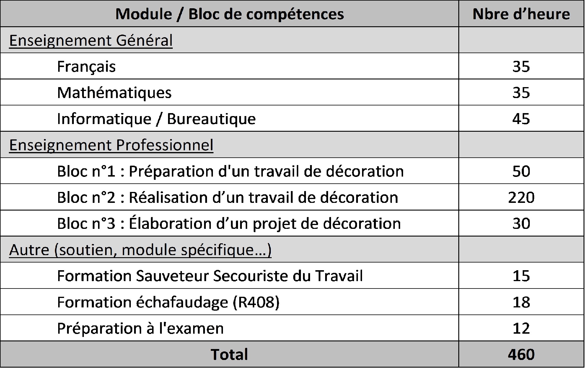 La formation s’étend sur une année scolaire pour une durée de 460 h en centre de formation.